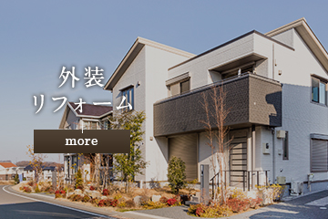 外壁や屋根、外構工事に対応しております。外装リフォームはデザイン性はもちろん、雨漏り防止などの機能性もより重要視すべきところ。お客様の理想やこだわりをお伺いし、お客様がより長く使用していただけるような、専門家目線での提案をいたします。